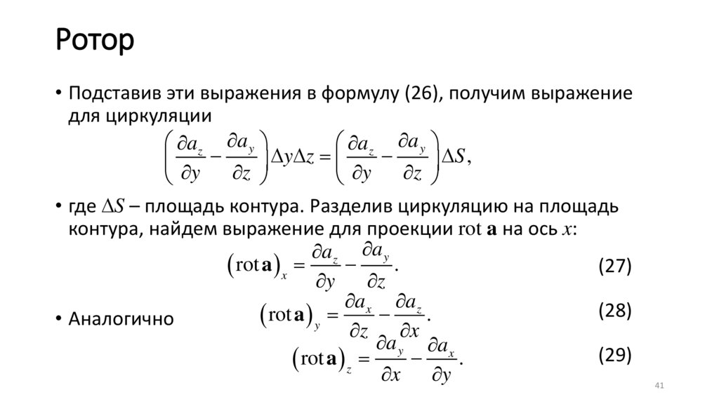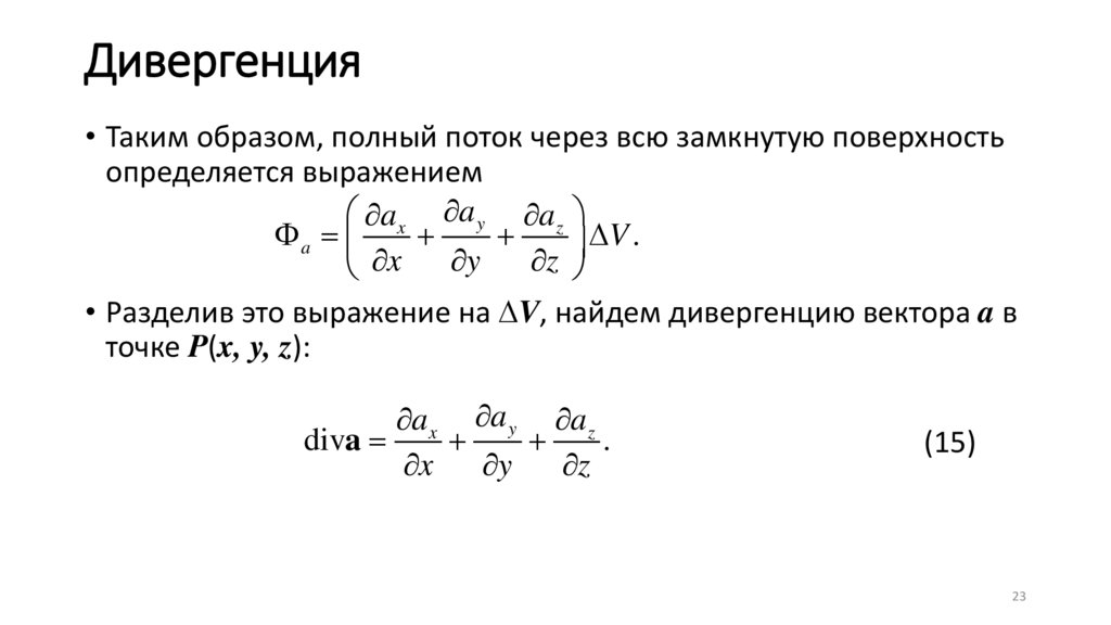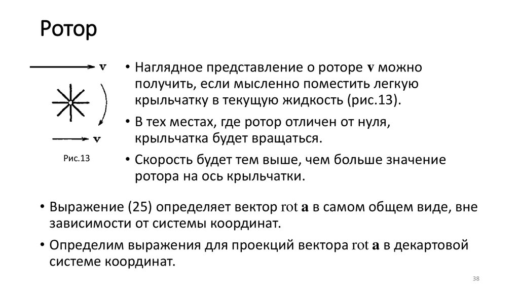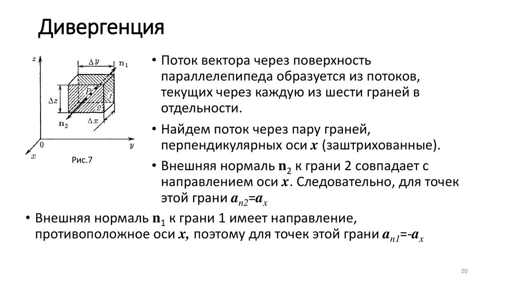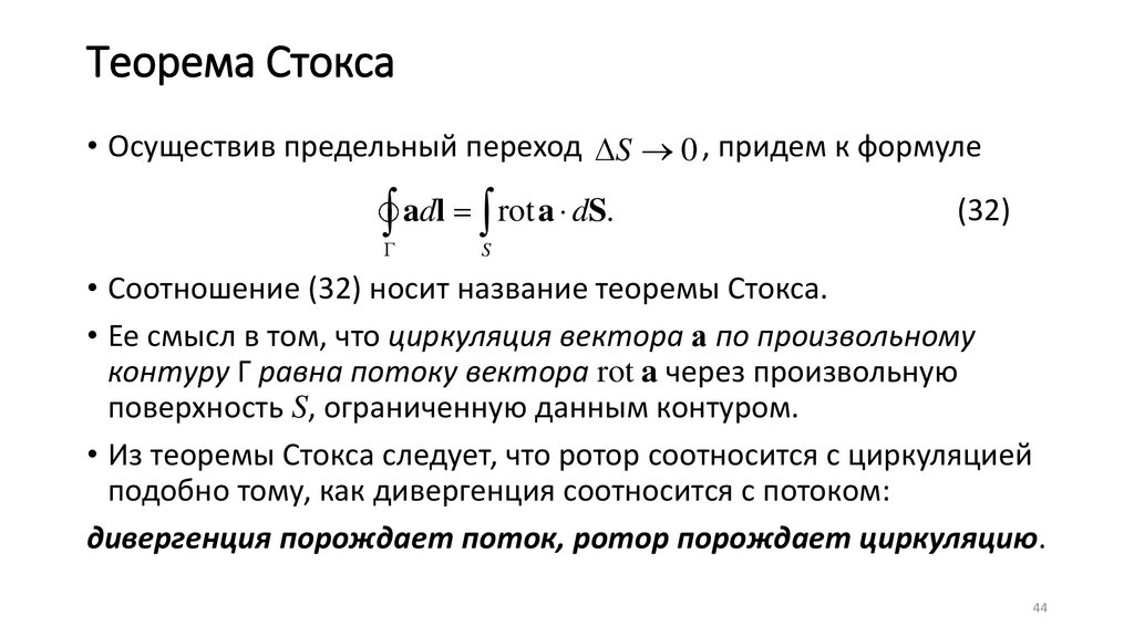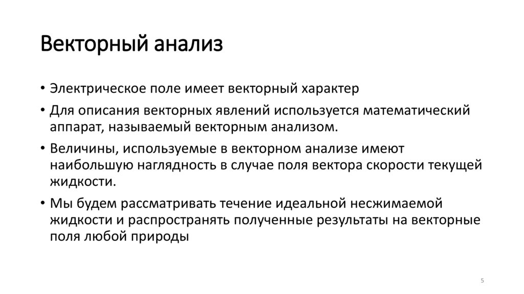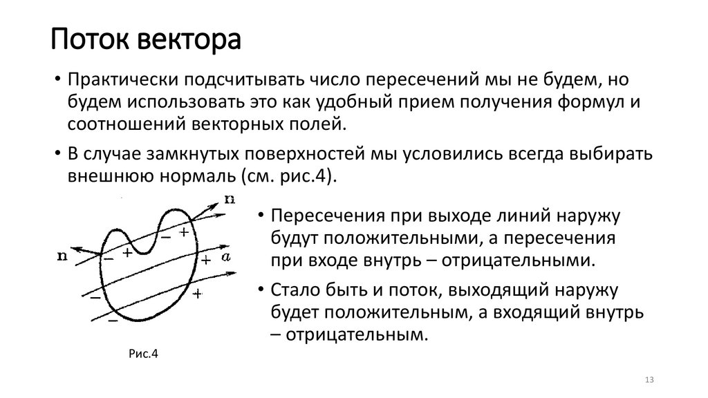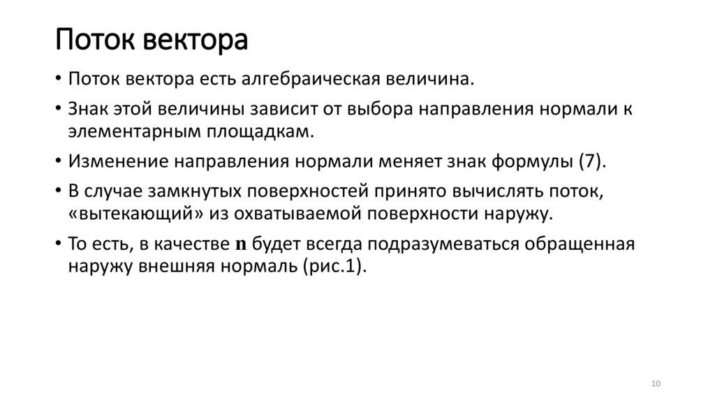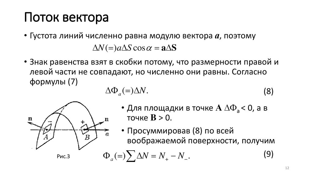 Поток вектора• Пусть течение жидкости охарактеризовано полем вектора