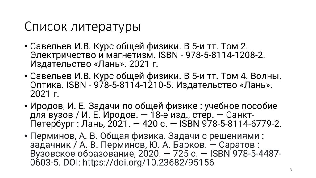 Список литературы• Савельев И.В. Курс общей физики. В 5-и тт. Том 2.