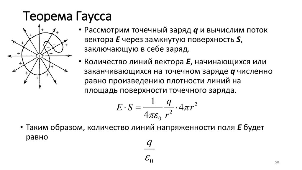 • Если r > R, внутрь поверхности сферы попадает весь заряд q,