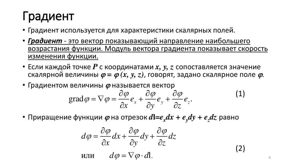 • Приращение функции на отрезок dl=exdx + eydy + ezdz равно