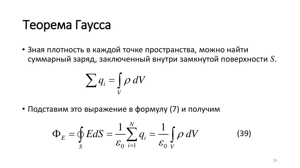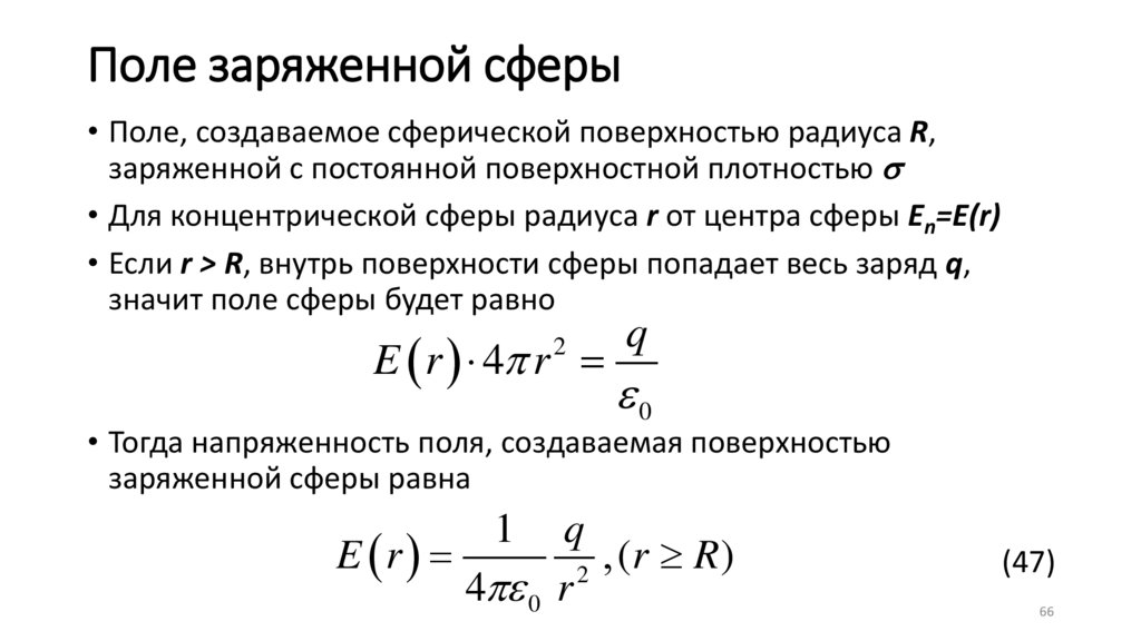 • Для концентрической сферы радиуса r от центра сферы En=E(r)