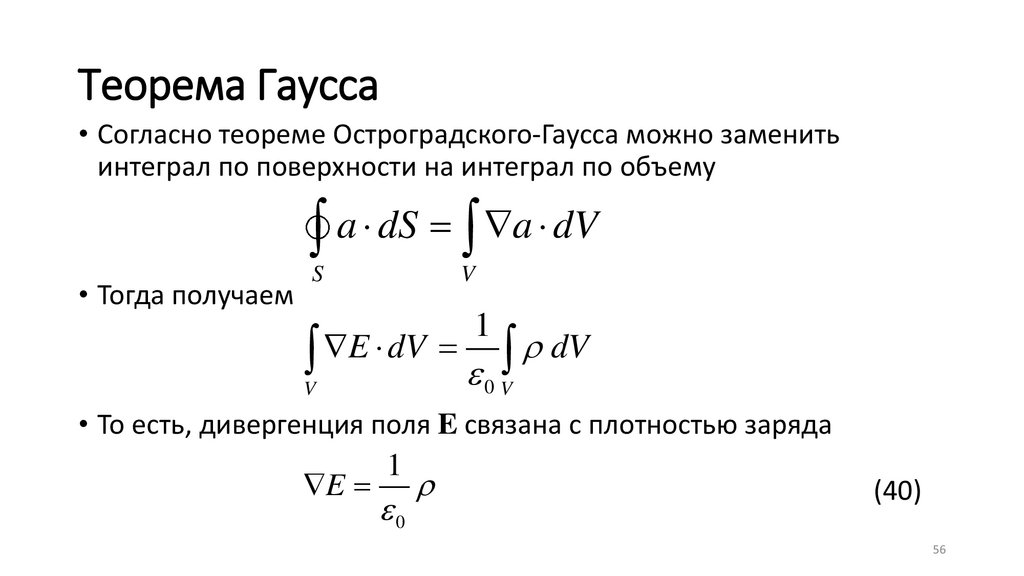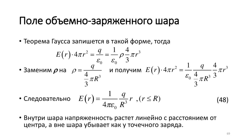 Поле объемно-заряженного шара• Теорема Гаусса запишется в такой форме, тогда