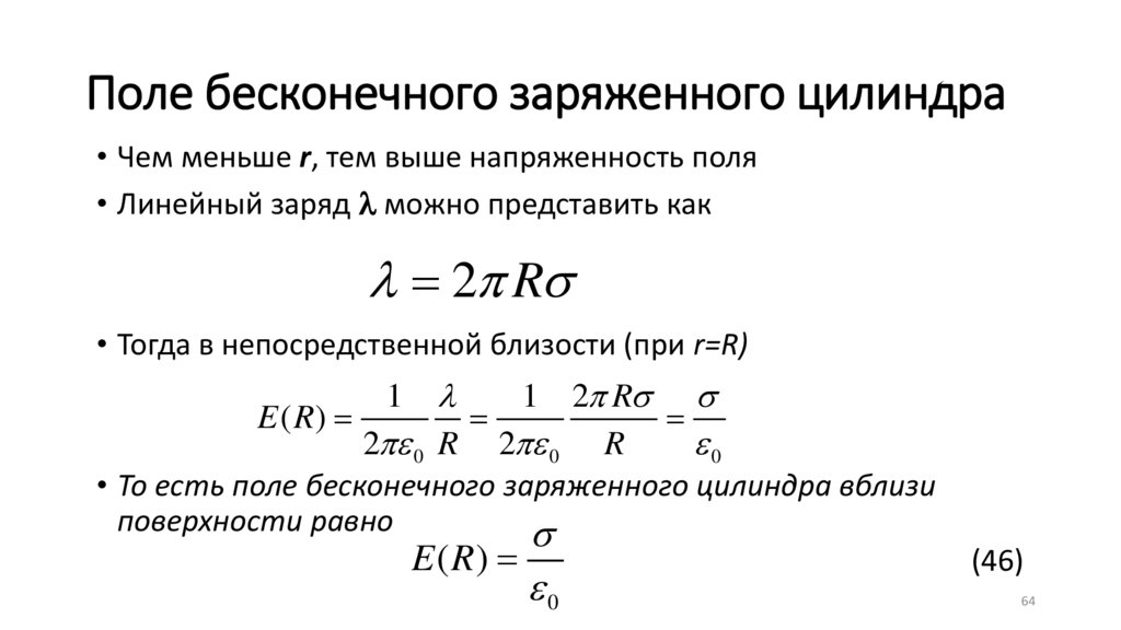 • То есть поле бесконечного заряженного цилиндра вблизи