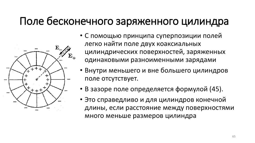Поле бесконечного заряженного цилиндра• С помощью принципа суперпозиции полей