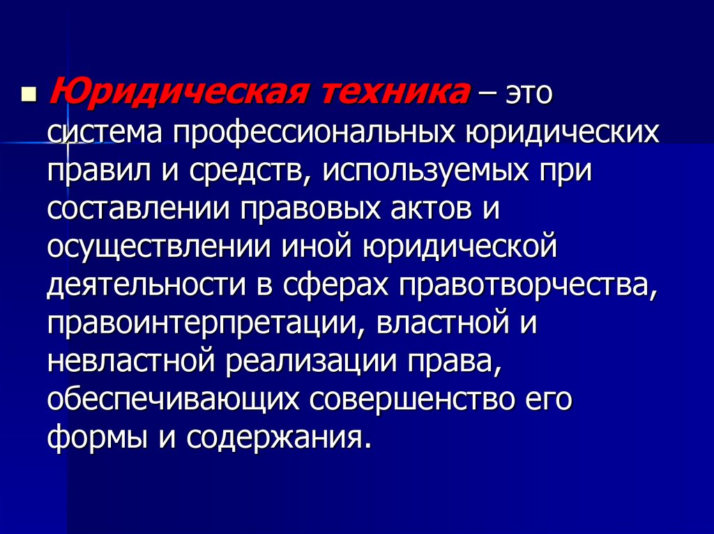 Юридическая техника Совокупность правил и приемовподготовки, рассмотрения, принятия