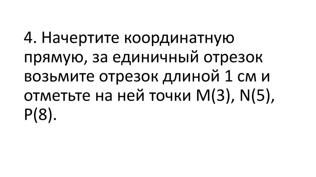 4. Начертите координатную прямую, за единичный отрезок возьмите отрезок длиной 1 см и