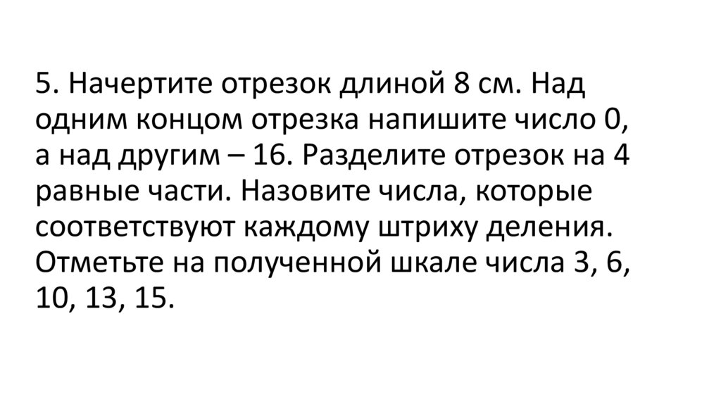 5. Начертите отрезок длиной 8 см. Надодним концом отрезка напишите число 0,