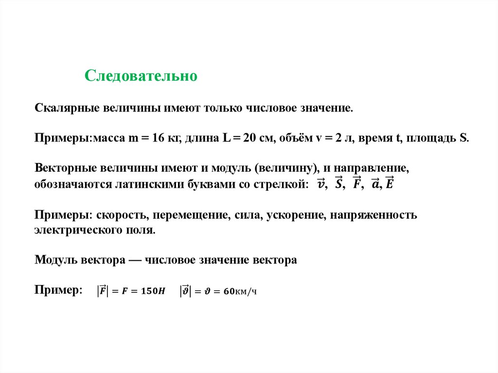 • 7.1.1.6 — знать разницу между скалярными и векторными величинами,уметь приводить примеры