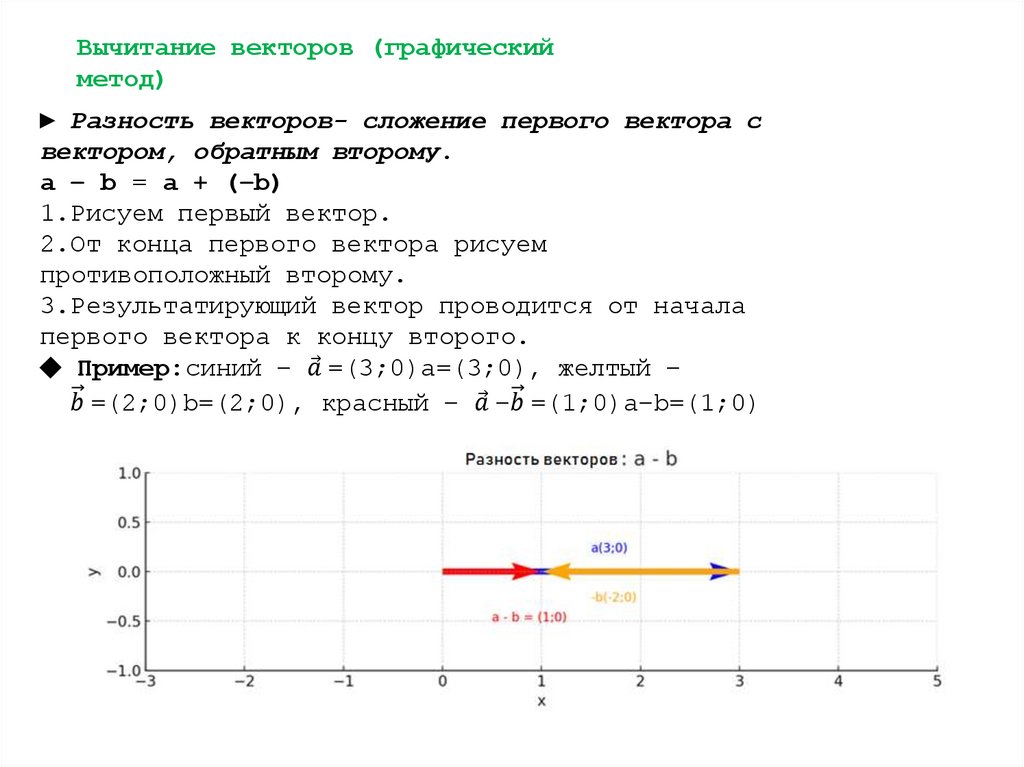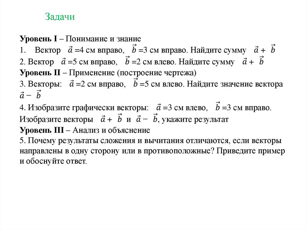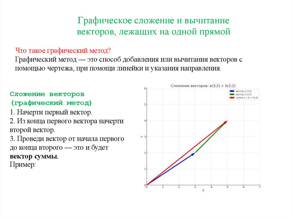 • 7.1.1.7 — уметь графически выполнять сложение и вычитание векторов,