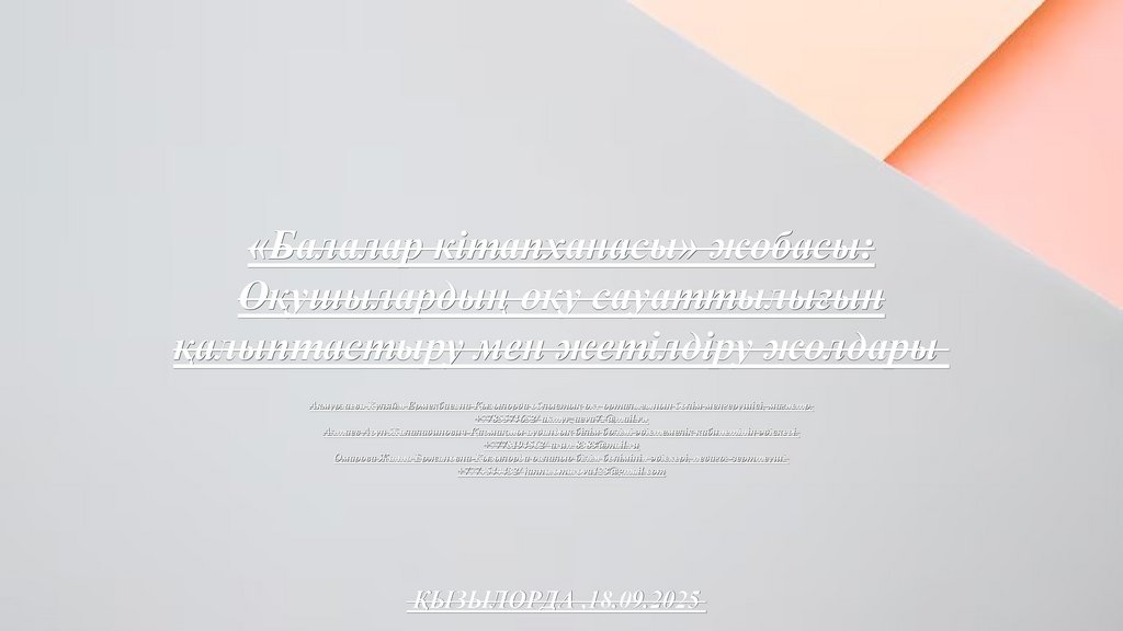 «Балалар кітапханасы» жобасы: Оқушылардың оқу сауаттылығын қалыптастыру мен жетілдіру жолдары