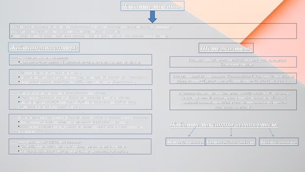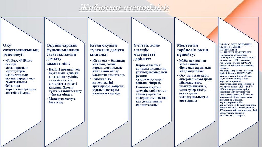 - Оқушылардың функционалдық сауаттылығын дамыту және оқу сауаттылығын дамыту.