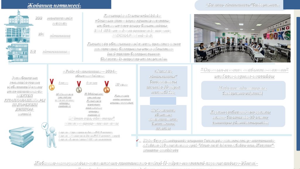 •Оқырман бұрыштарын, "book-café", "оқу залдарын" ұйымдастыру.