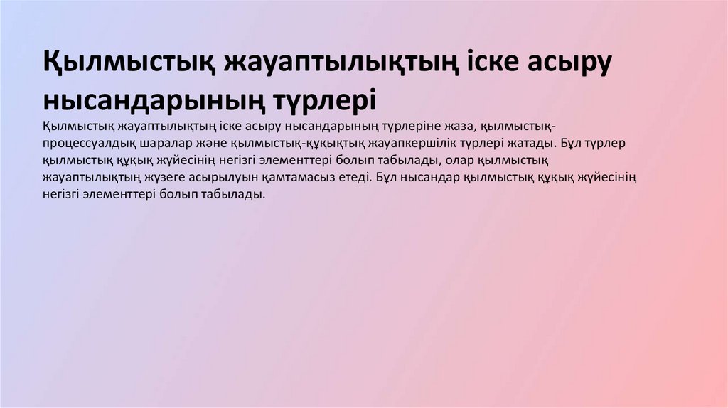 Қылмыстық-құқықтық жауапкершілік түрлері қылмыстық жауаптылықтың іске асыру