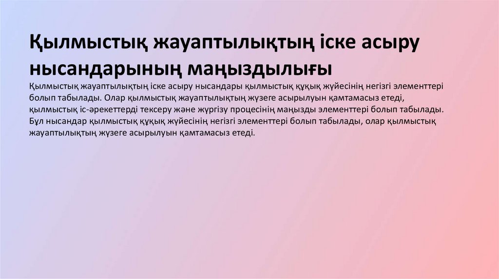 негізгі элементтері болып табылады. Олар қылмыстық жауаптылықтың жүзеге асырылуын