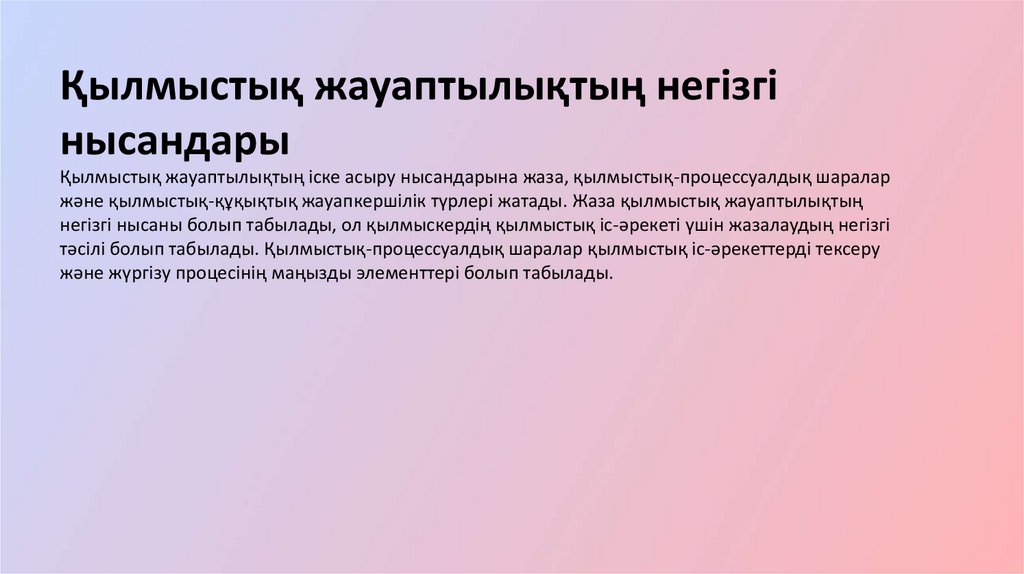 нысандарының маңызды бөлігі болып табылады. Бұл түрлерге қылмыстық жауапкершілік,