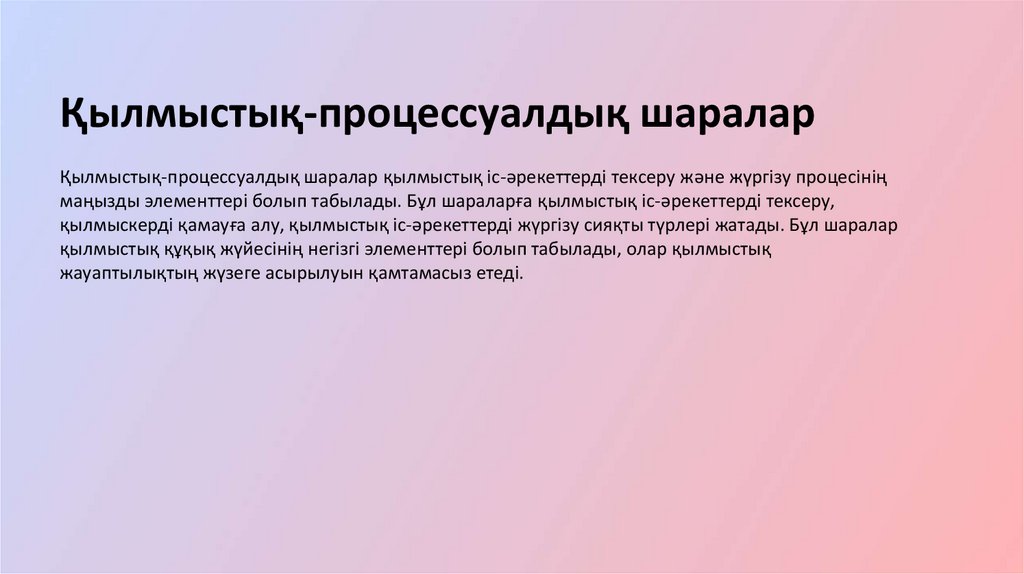 Қылмыстық-процессуалдық шараларҚылмыстық-процессуалдық шаралар қылмыстық іс-әрекеттерді тексеру және жүргізу процесінің