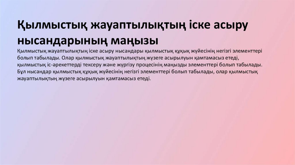 Қылмыстық жауаптылықтың іске асырунысандарының маңызы