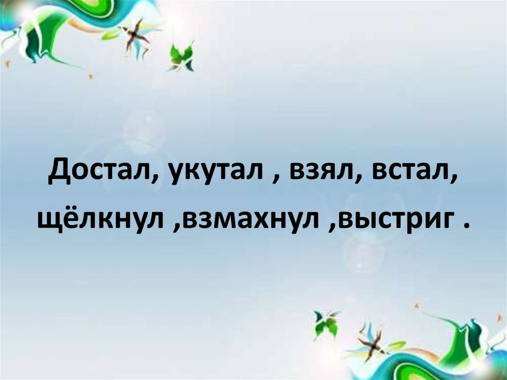 Достал, укутал , взял, встал,щёлкнул ,взмахнул ,выстриг .