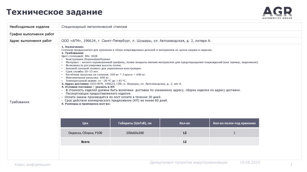 ООО «АГМ», 196624, г. Санкт-Петербург, п. Шушары, ул. Автозаводская, д. 2, литера А.