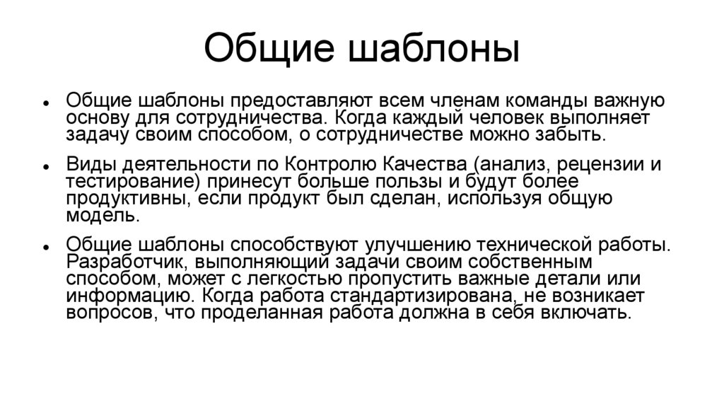 Общие шаблоныОбщие шаблоны предоставляют всем членам команды важную