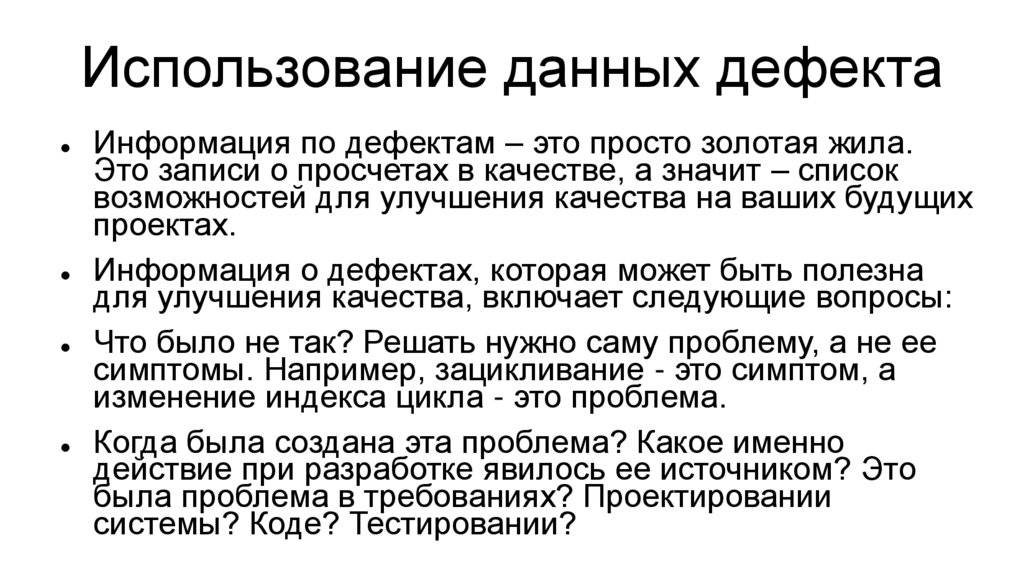 Использование данных дефектаИнформация по дефектам – это просто золотая жила.