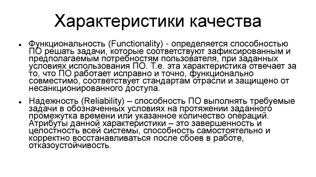 Характеристики качестваФункциональность (Functionality) - определяется способностью