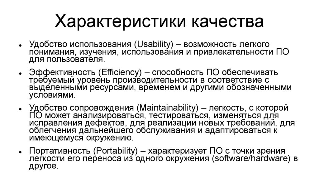 Характеристики качестваУдобство использования (Usability) – возможность легкого