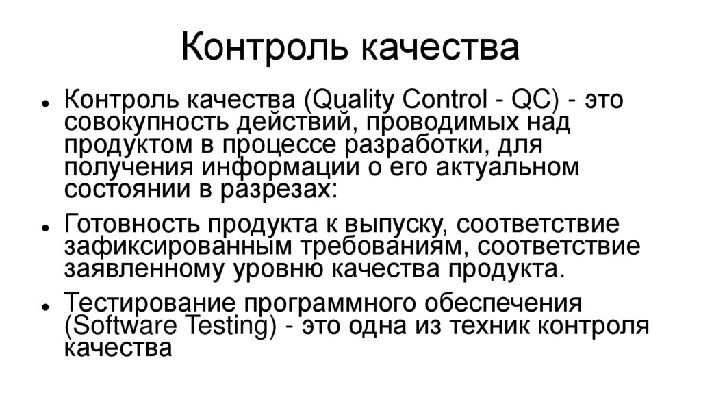 Контроль качестваКонтроль качества (Quality Control - QC) - это