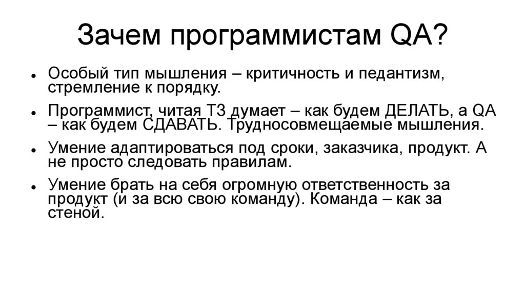 Зачем программистам QA?Особый тип мышления – критичность и педантизм,