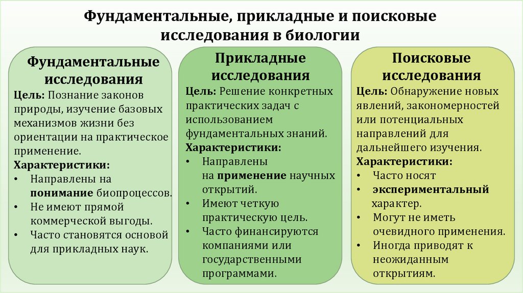 Фундаментальные, прикладные и поисковыеисследования в биологии