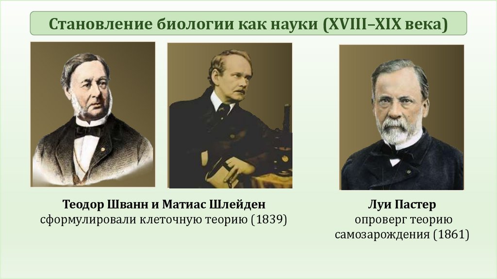 Становление биологии как науки (XVIII–XIX века)Теодор Шванн и Матиас Шлейден