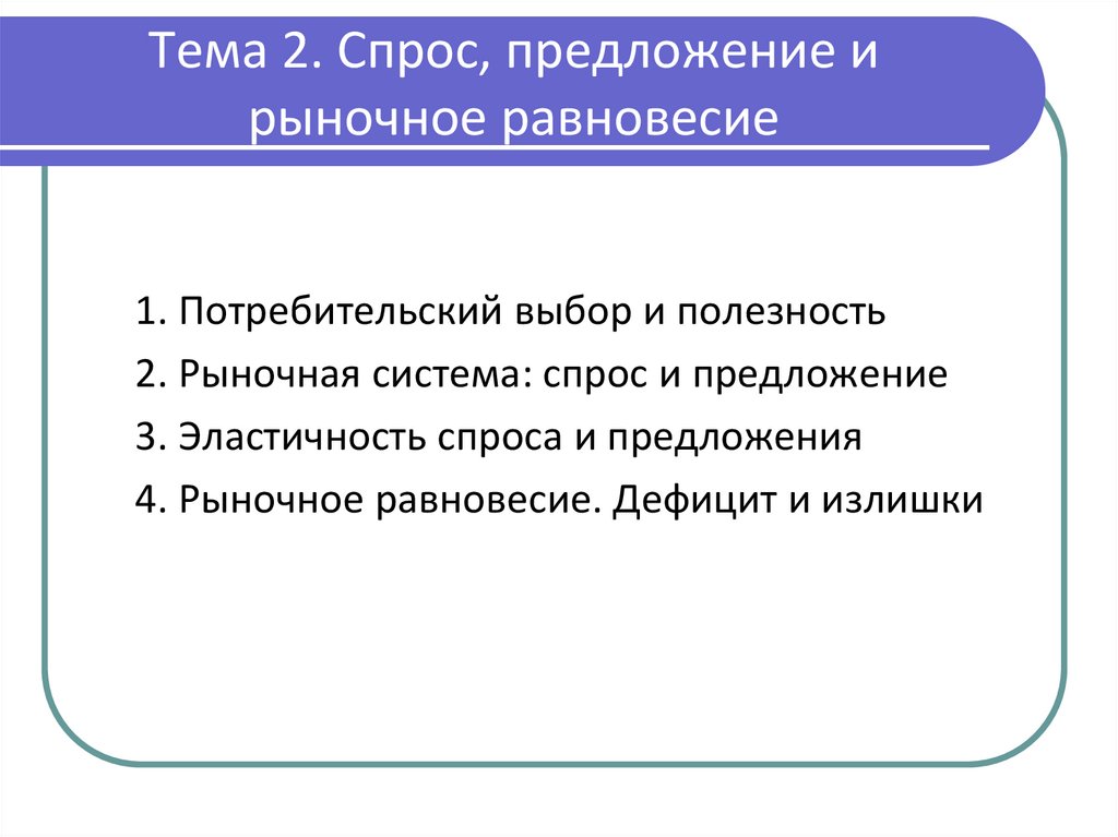 1. Тема 2. Спрос, предложение и рыночное равновесие
