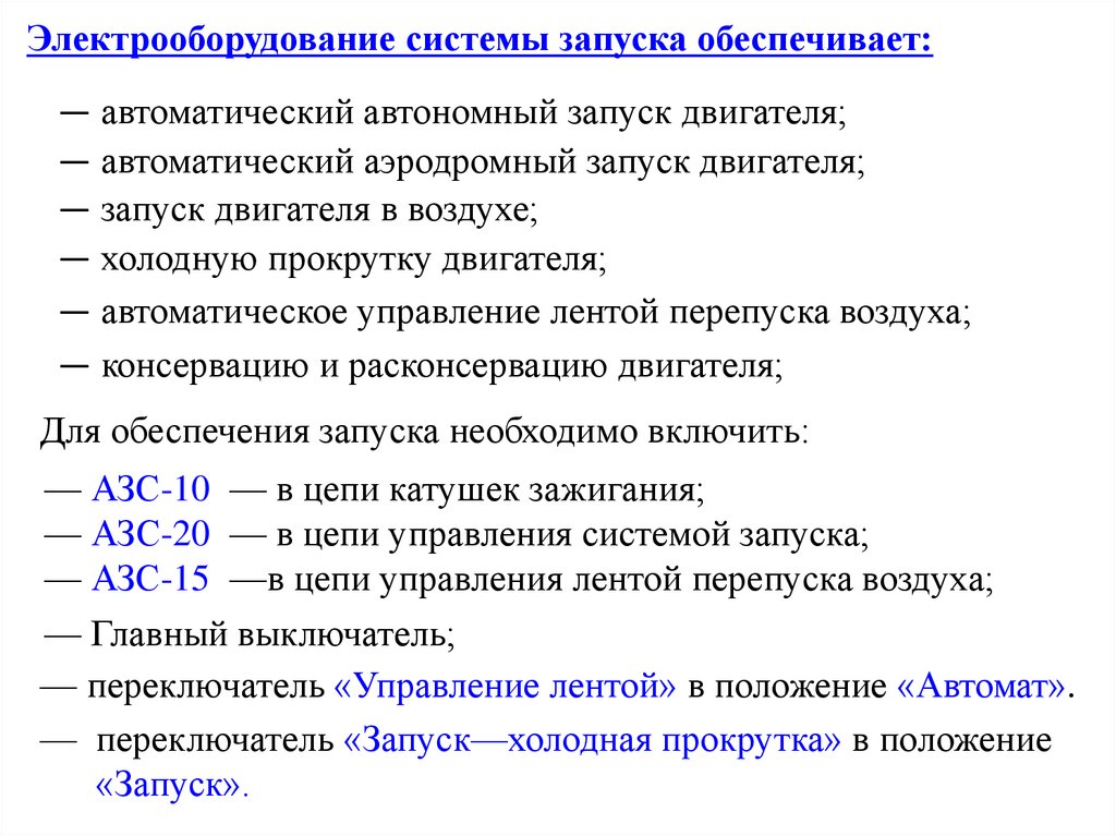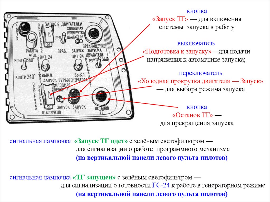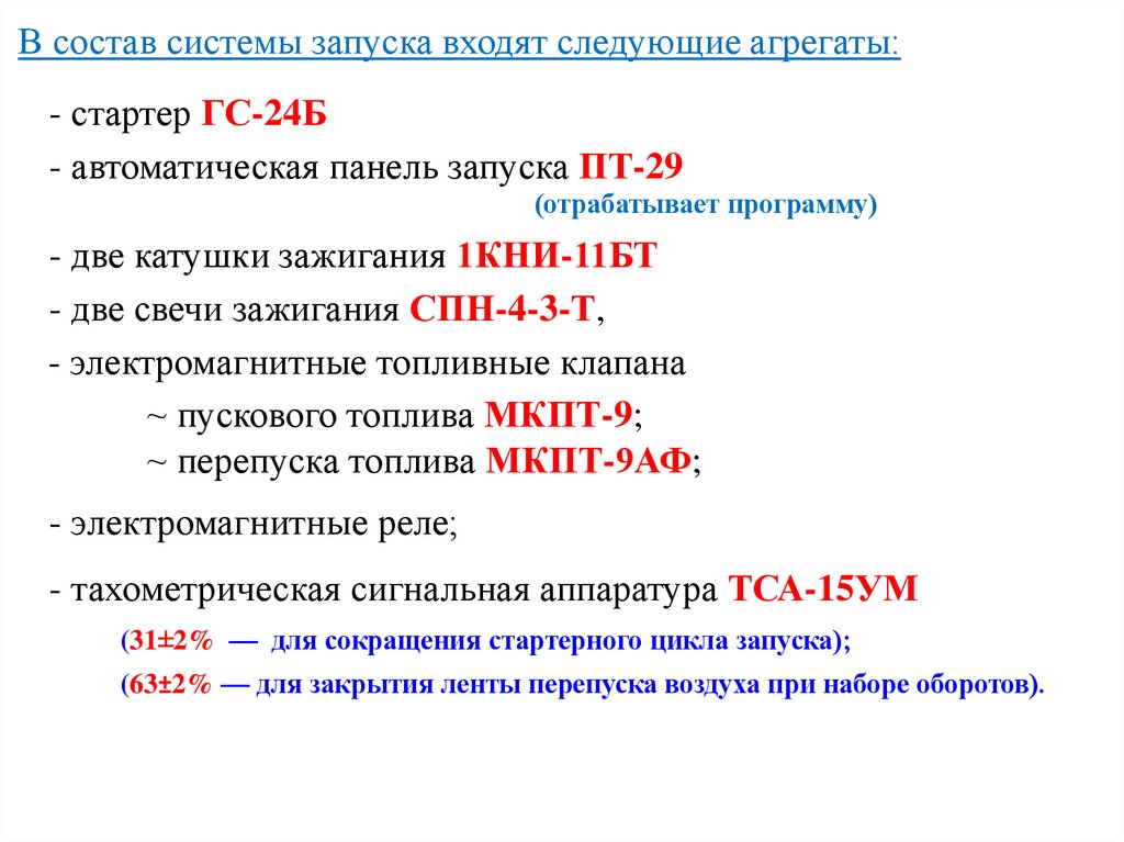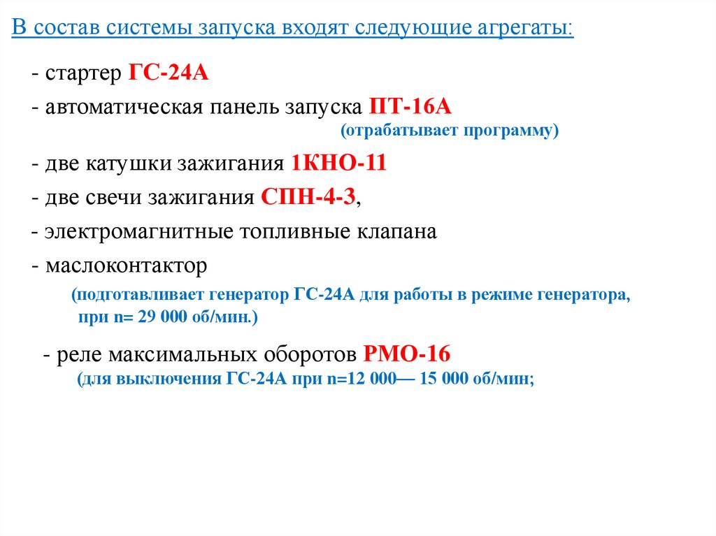 В состав системы запуска входят следующие агрегаты:- стартер ГС-24А