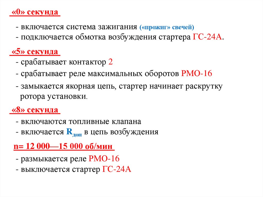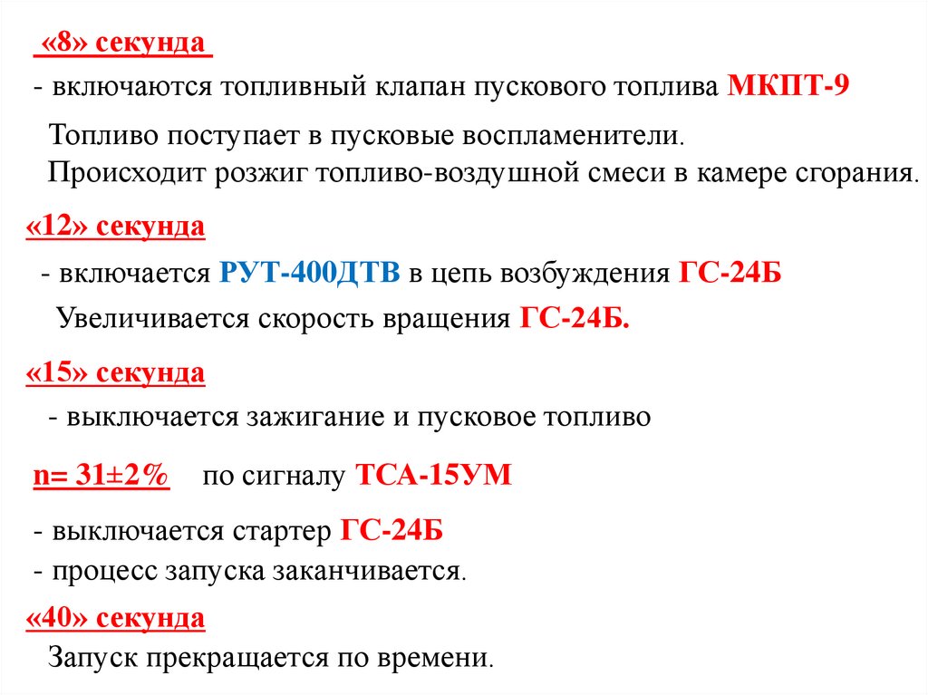 «8» секунда- включаются топливный клапан пускового топлива МКПТ-9