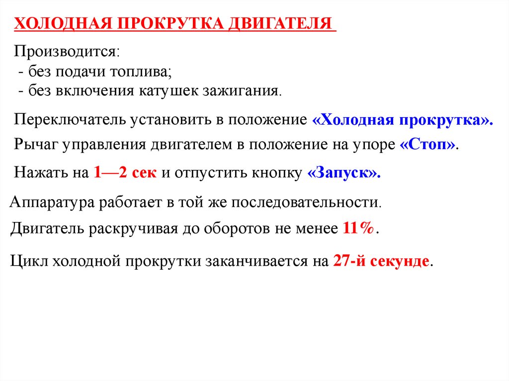 ХОЛОДНАЯ ПРОКРУТКА ДВИГАТЕЛЯПроизводится: