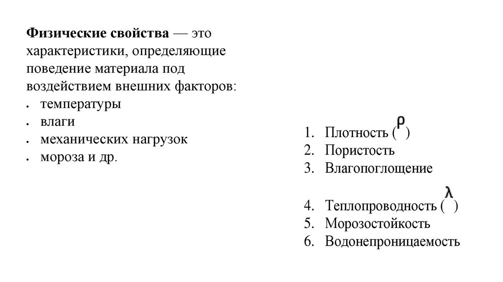 Физические свойствастроительных