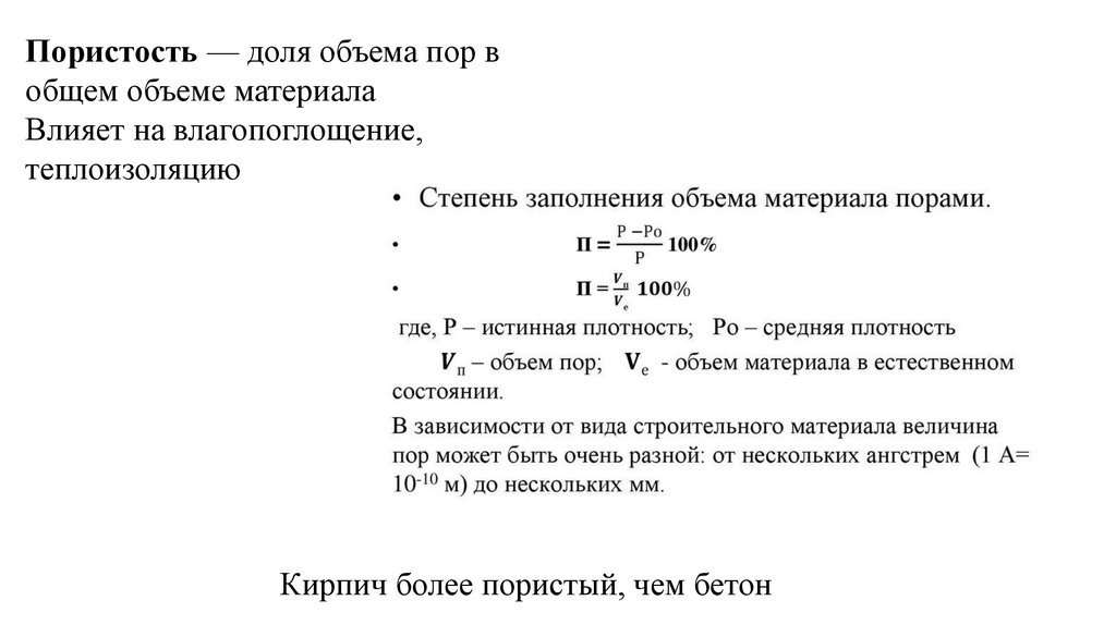Пористость — доля объема пор вобщем объеме материала