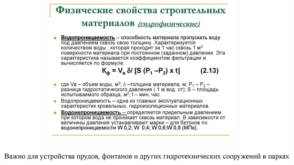 Важно для устройства прудов, фонтанов и других гидротехнических сооружений в парках9.
