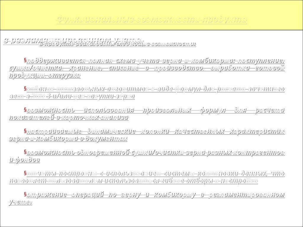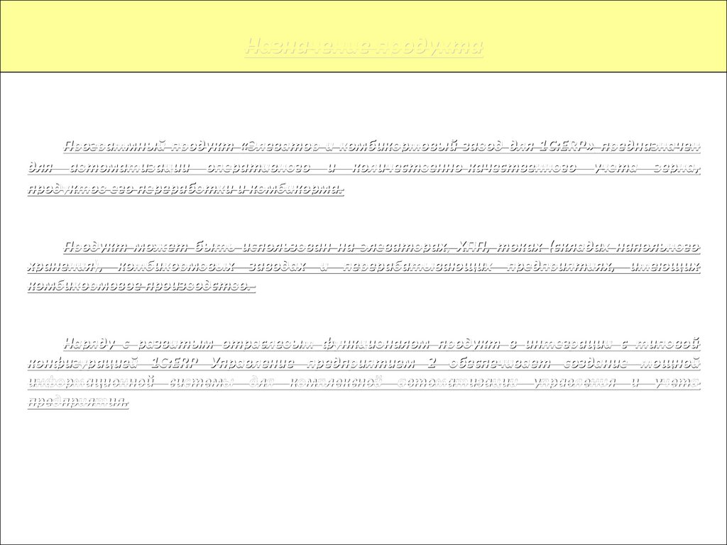 Программный продукт «Элеватор и комбикормовый завод для 1С:ERP» предназначен