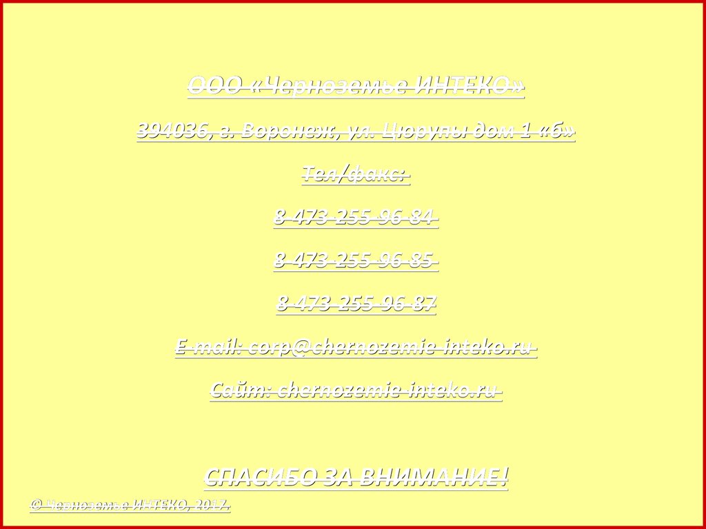 ООО «Черноземье ИНТЕКО»394036, г. Воронеж, ул. Цюрупы дом 1 «б»
