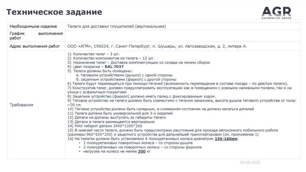 ООО «АГМ», 196624, г. Санкт-Петербург, п. Шушары, ул. Автозаводская, д. 2, литера А.