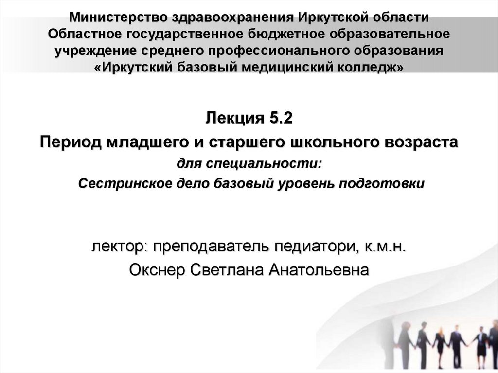 Лекция 5.2 Период младшего и старшего школьного возраста