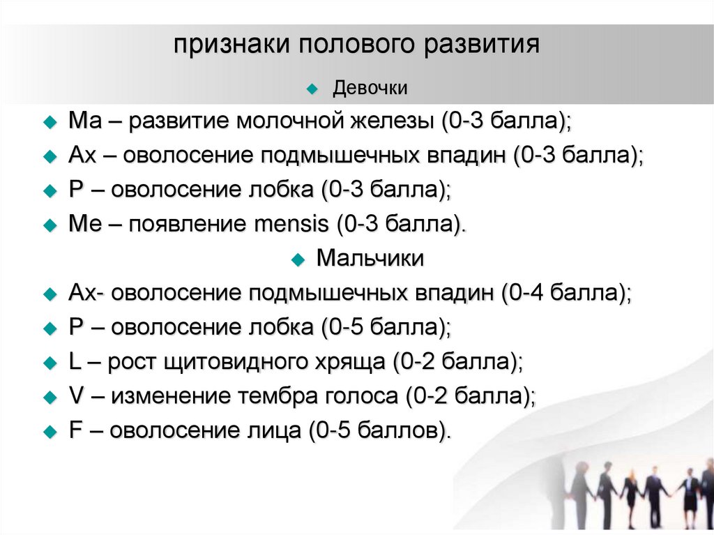 Ах – оволосение подмышечных впадин (0-3 балла);
