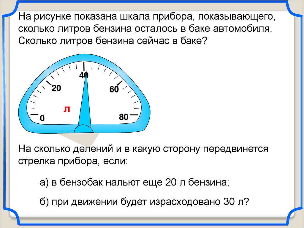 длину того или иного отрезка, уметь определять цену деления шкалы.