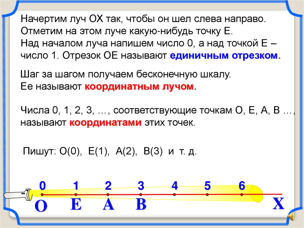 число 1. Отрезок ОЕ называют единичным отрезком.