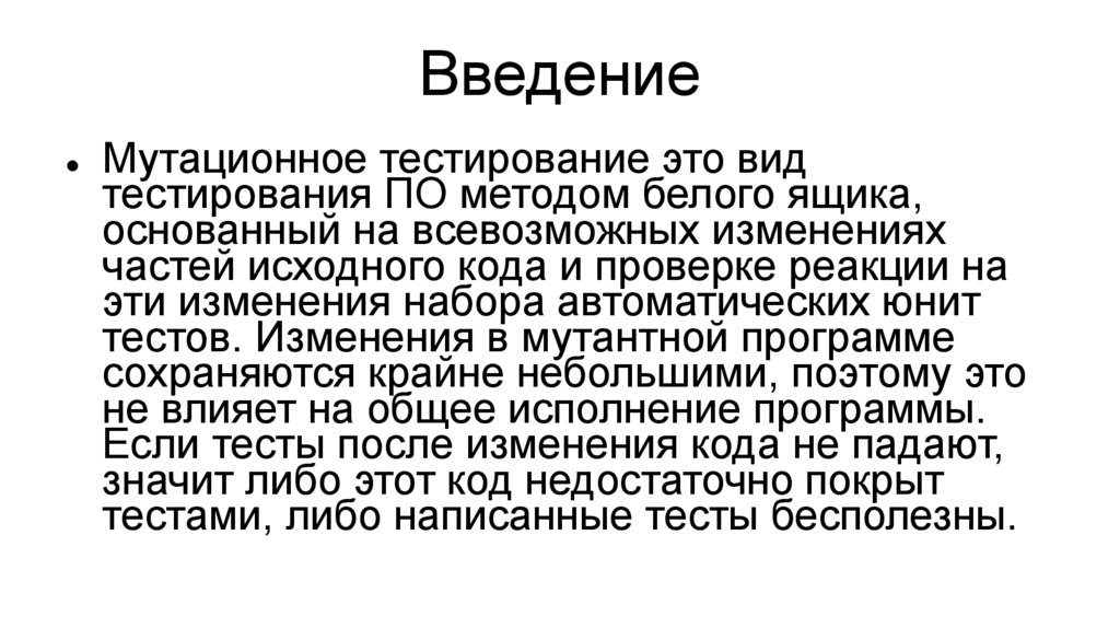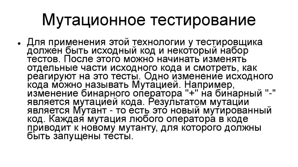 Мутационное тестированиеДля применения этой технологии у тестировщика