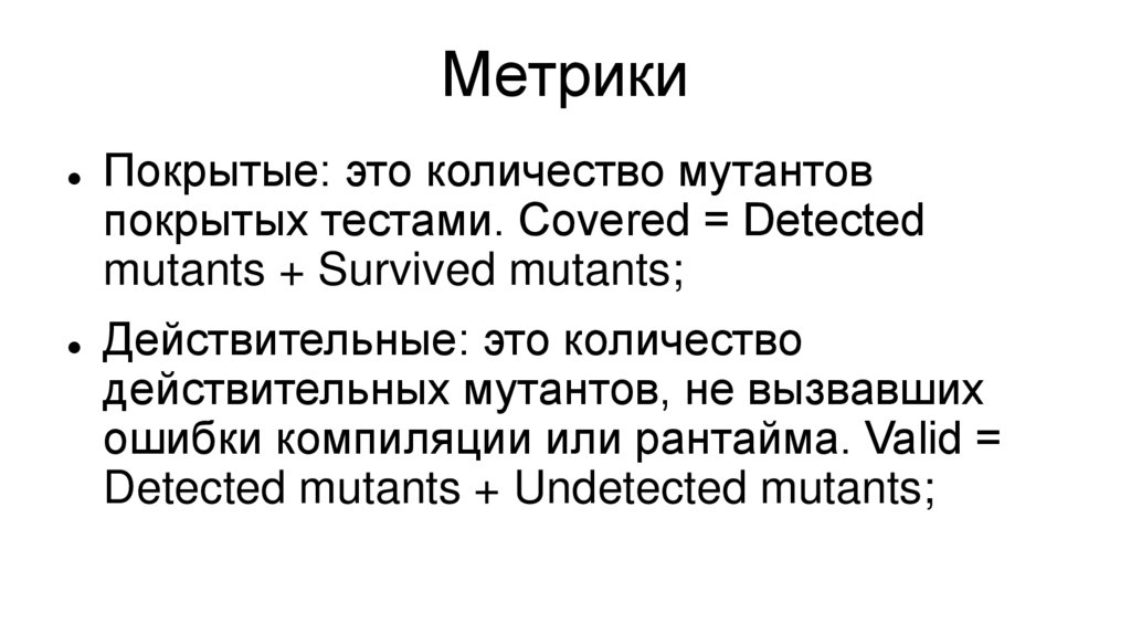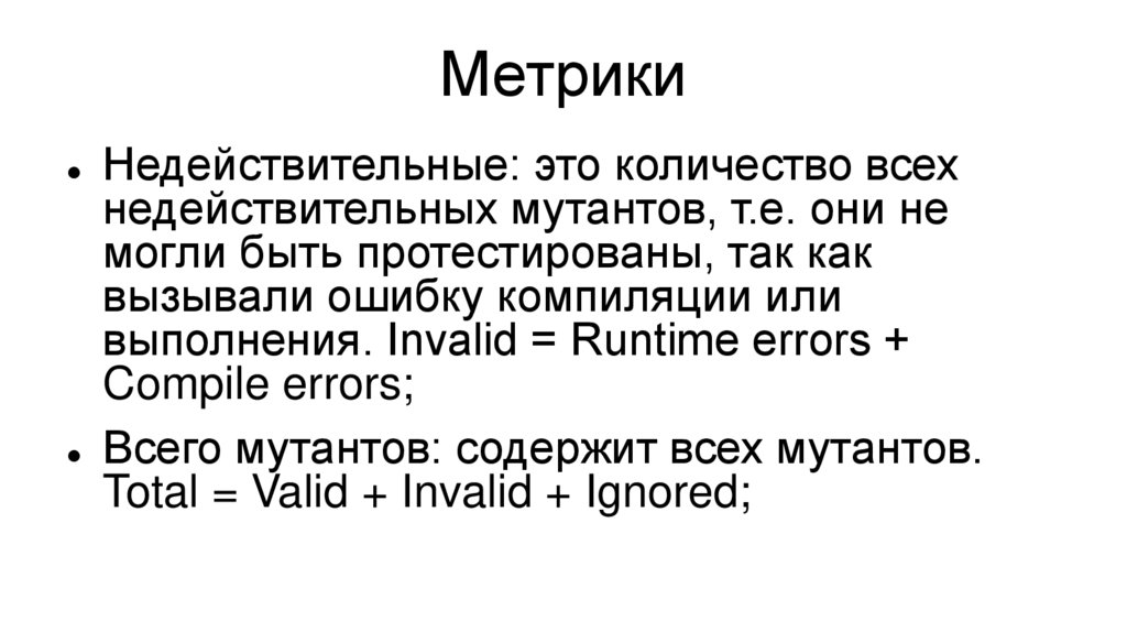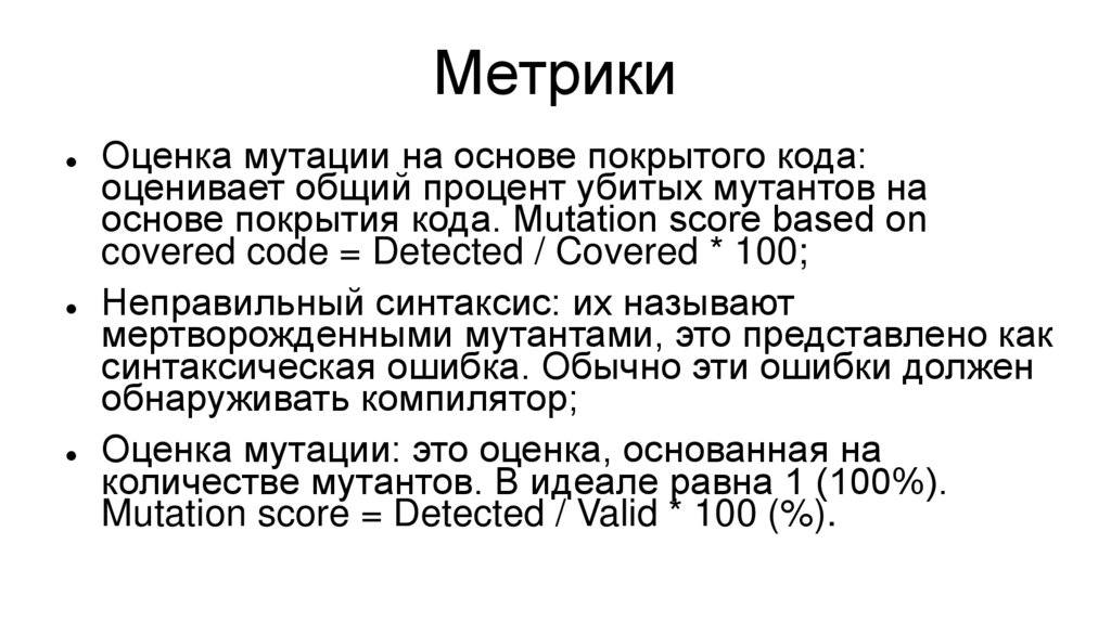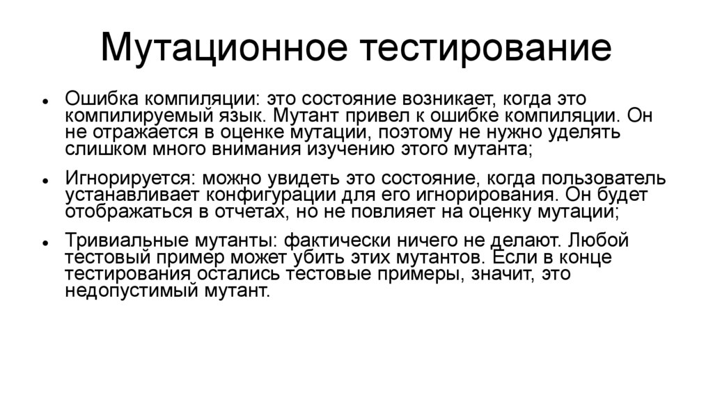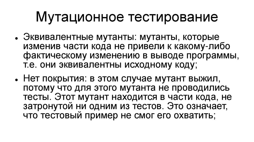 Мутационное тестированиеЭквивалентные мутанты: мутанты, которые