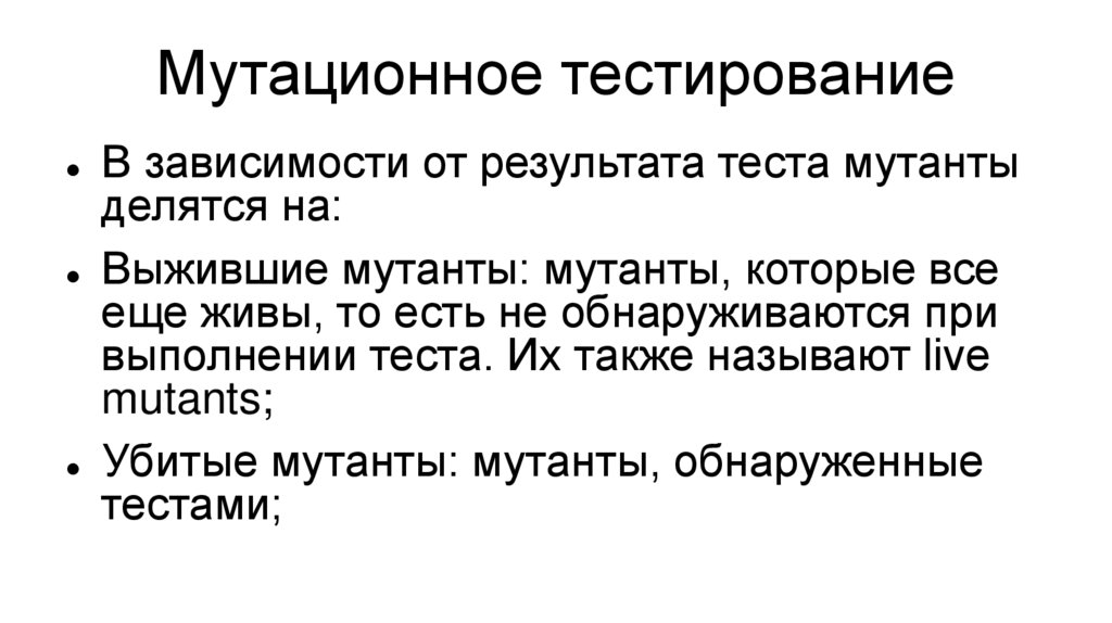 Мутационное тестированиеВ зависимости от результата теста мутанты