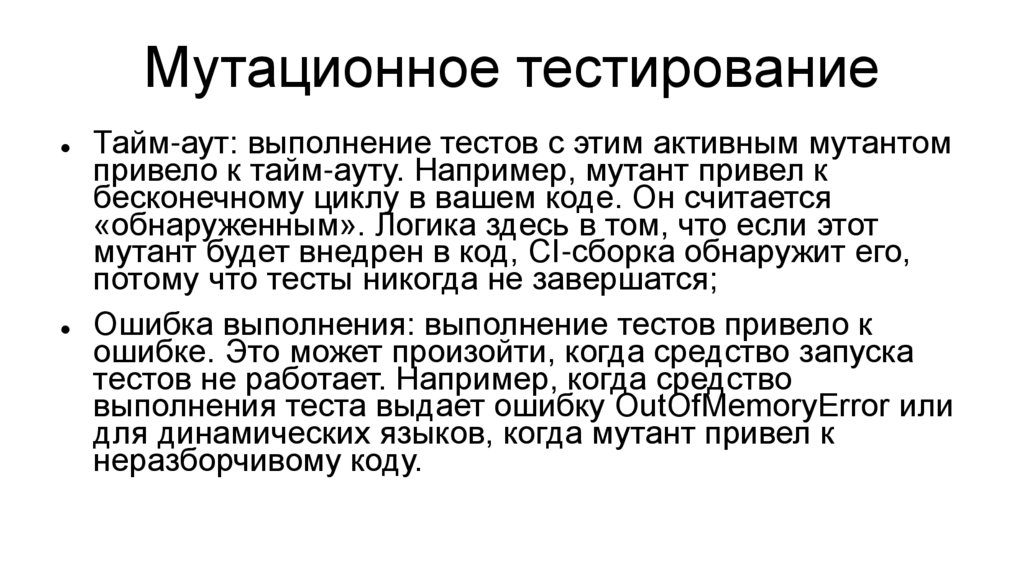 Мутационное тестированиеТайм-аут: выполнение тестов с этим активным мутантом