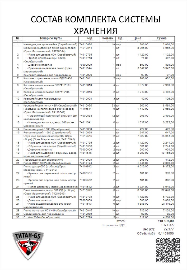 СОСТАВ КОМПЛЕКТА СИСТЕМЫ